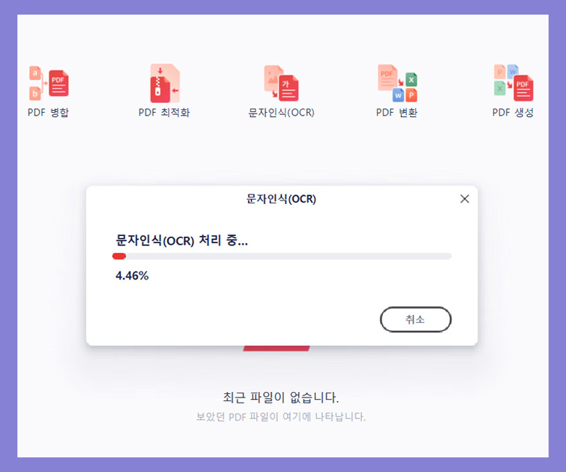 하지만 문자인식(OCR) 처리를 해주면 PDF에 포함된 이미지나 TEXT를 편집 또는 검색 가능하게 만들어준다.